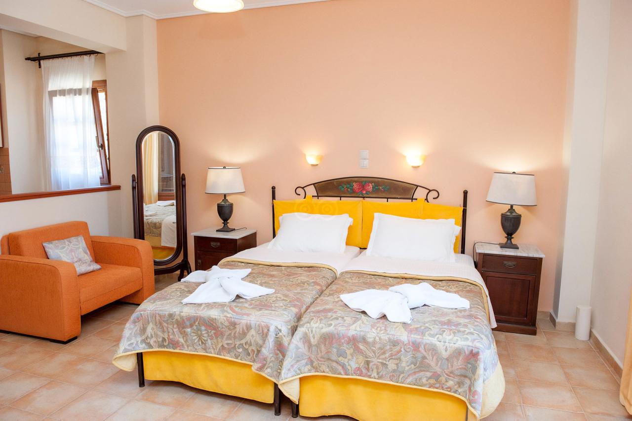 | Hotel se nachází jen 50 m od písečné pláže v oblíbeném letovisku Skala. Hotel je téměř u pobřežní třídy a promenády, nedaleko jsou bary, restaurace, obchody. Pláž ve Skale je známá pro svou krásu a čistotu, nedaleko se nachází menší přírodní zálivy s izolovanými plážemi, moře je zde téměř vždy klidné. |